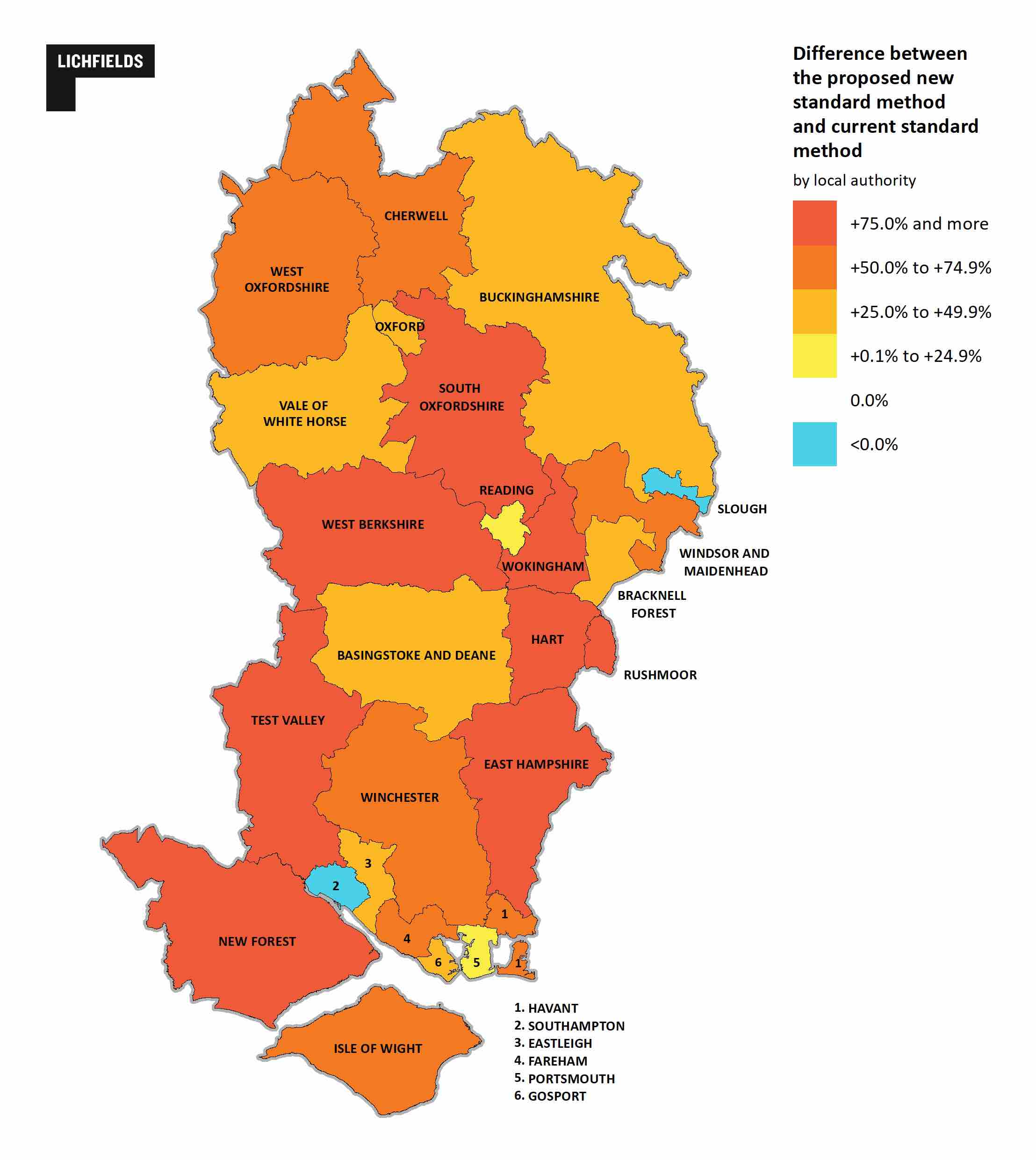 The Standard Method was first introduced in 2017 but gained notoriety in 2022 when proposals to change it in 2020 gained significant media attention and earned the pejorative ‘the mutant algorithm’. The latest update to the Standard Method proposed in 2024 would substantially increase the baseline housing need for the vast majority of local authorities in the Thames Valley– including Reading as shown below.