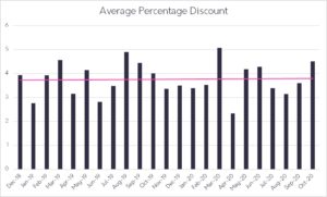In the new build property market we can also see that year-on-year the average amount of discount on properties sold has also decreased, especially in April and August.