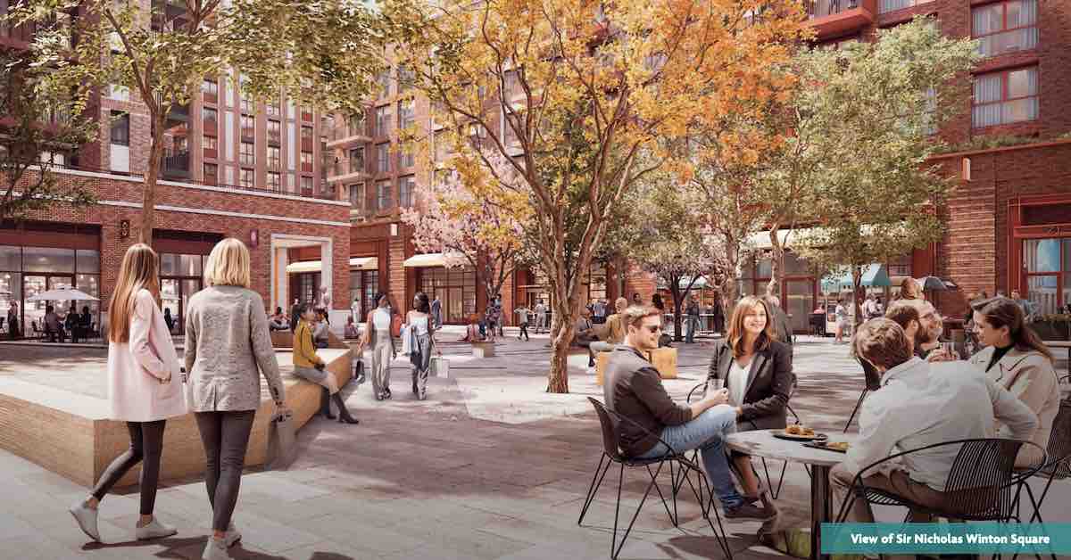 New public realm created will increase from 1.5 acres to 1.65 out of a total footprint of 6.84 acres and Areli says there will be a biodiversity net gain of 800 per cent.