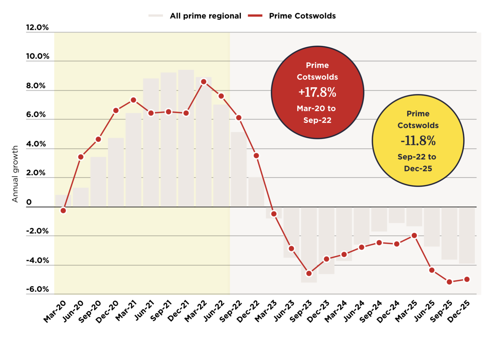 As a result, prices have fallen by -12 per cent since then, leading to net growth of 4 per cent between March 2020 and the end of 2025.