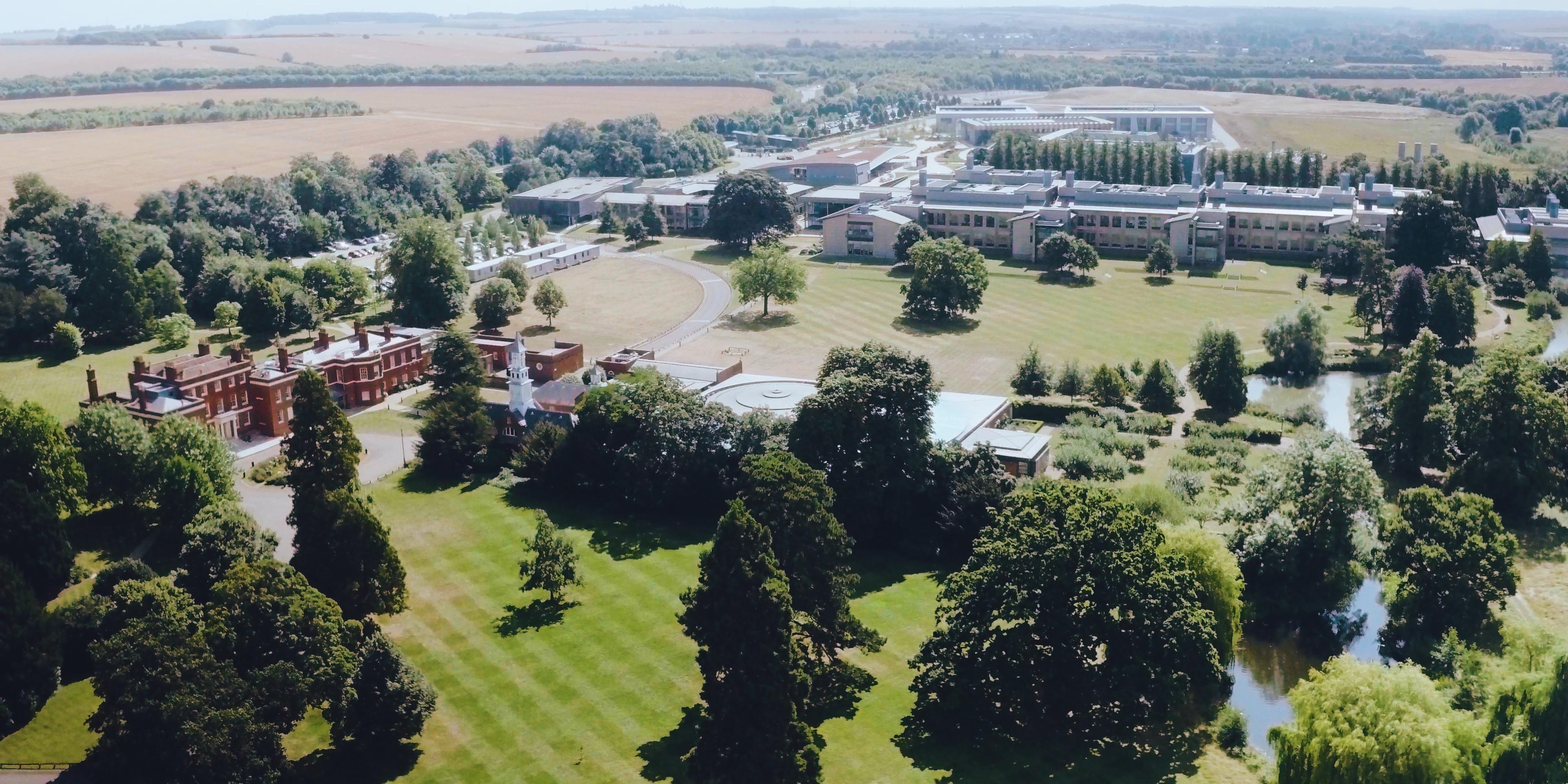 Inset images: aerial view of Campus and aerial view of Campus from Hinxton side.